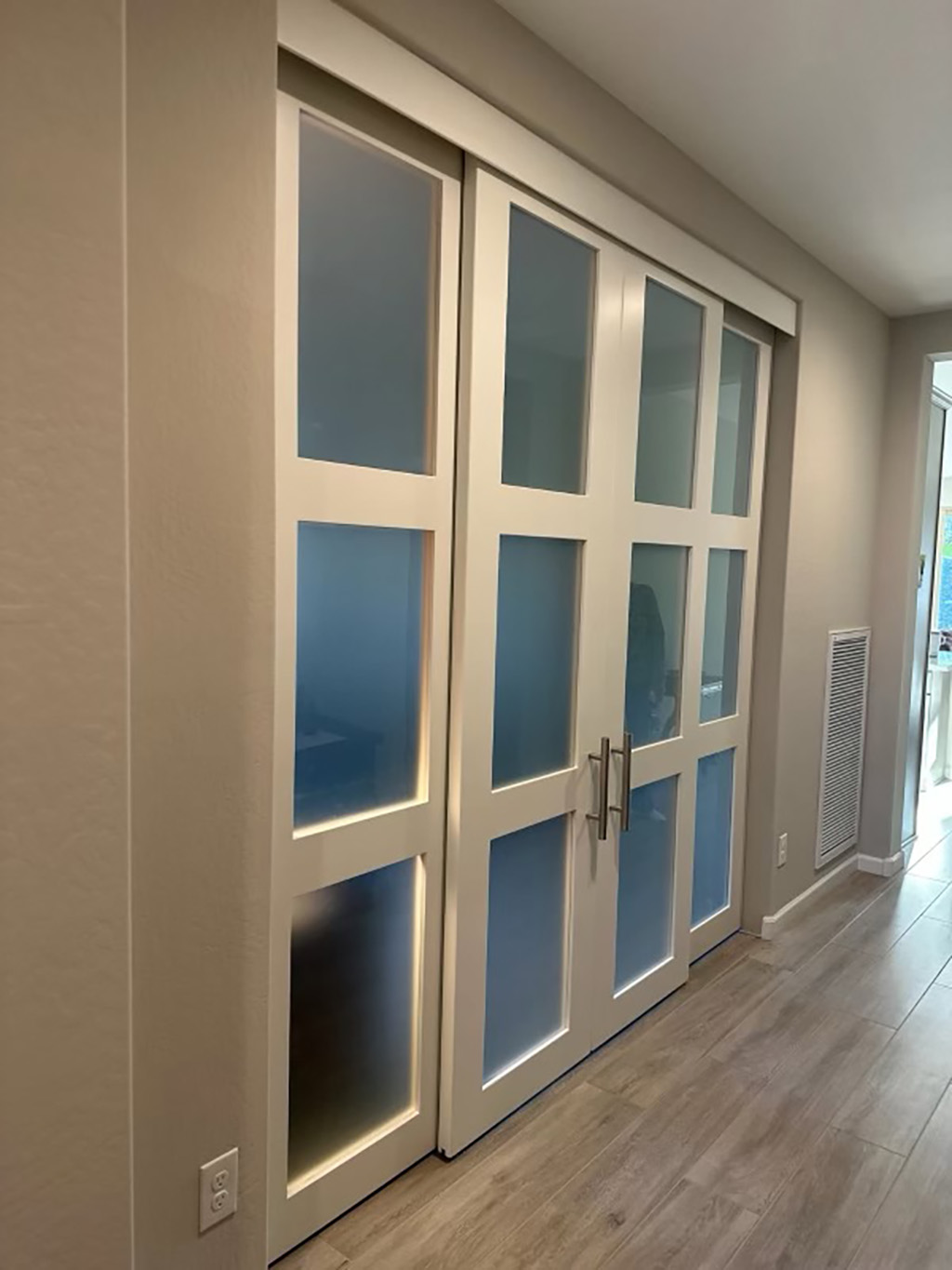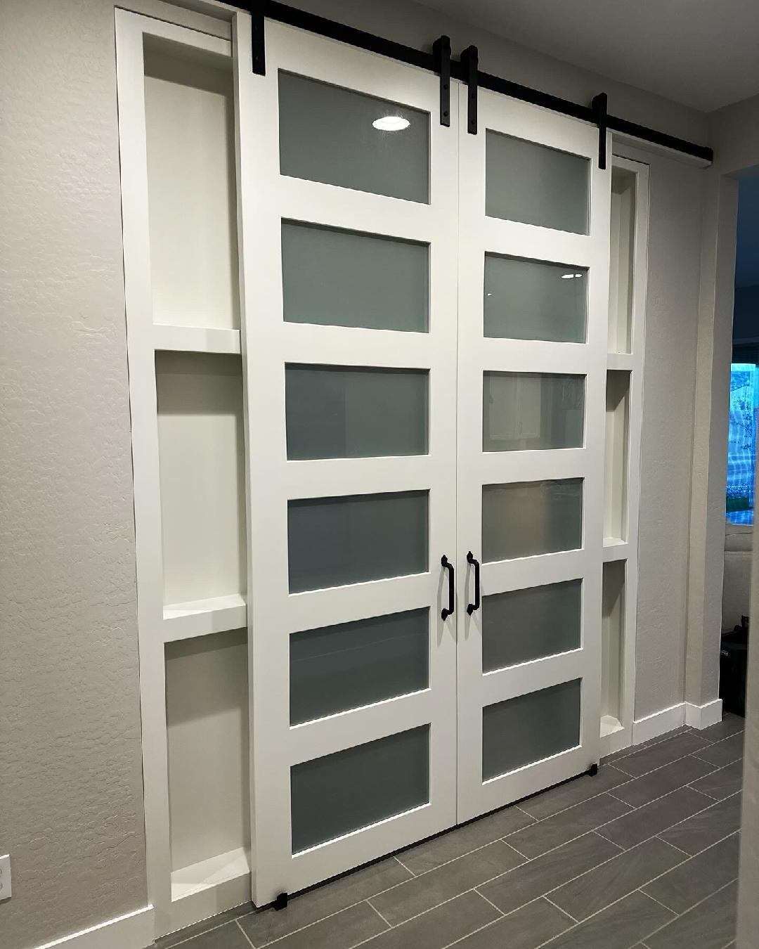 Four Door, 3-Lite Frosted Glass Barn Door System (Hidden Track) Copy