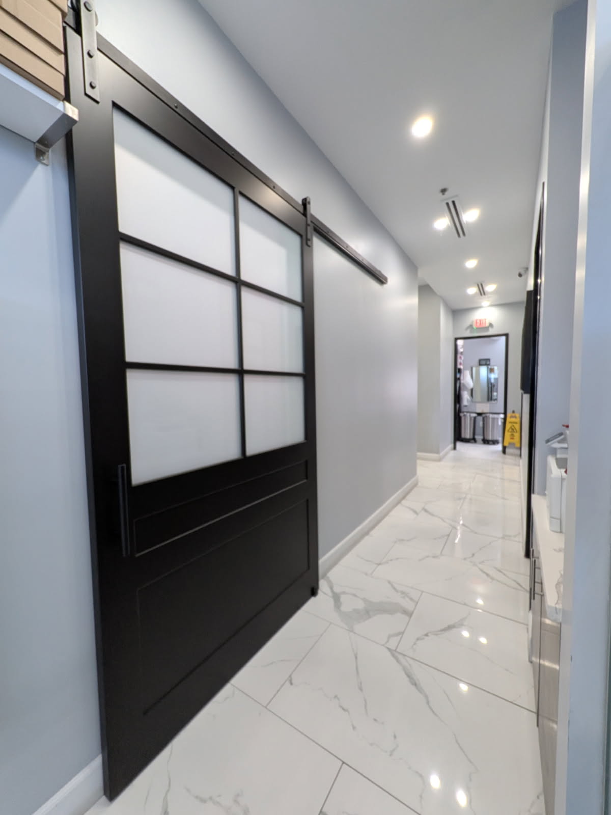 Modern 6 Lite Frosted Glass Barn Door Set